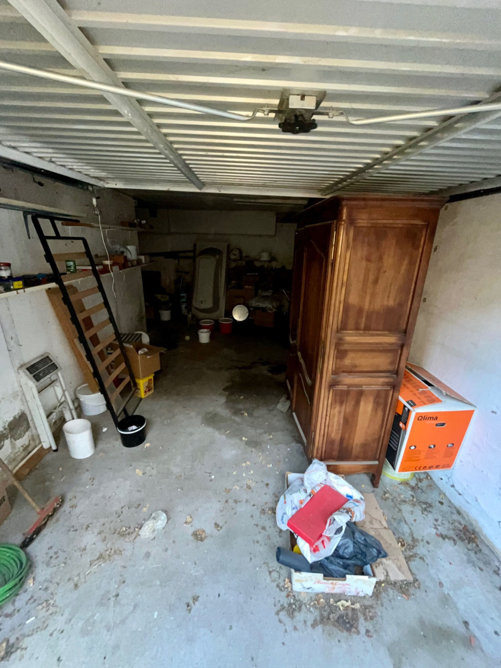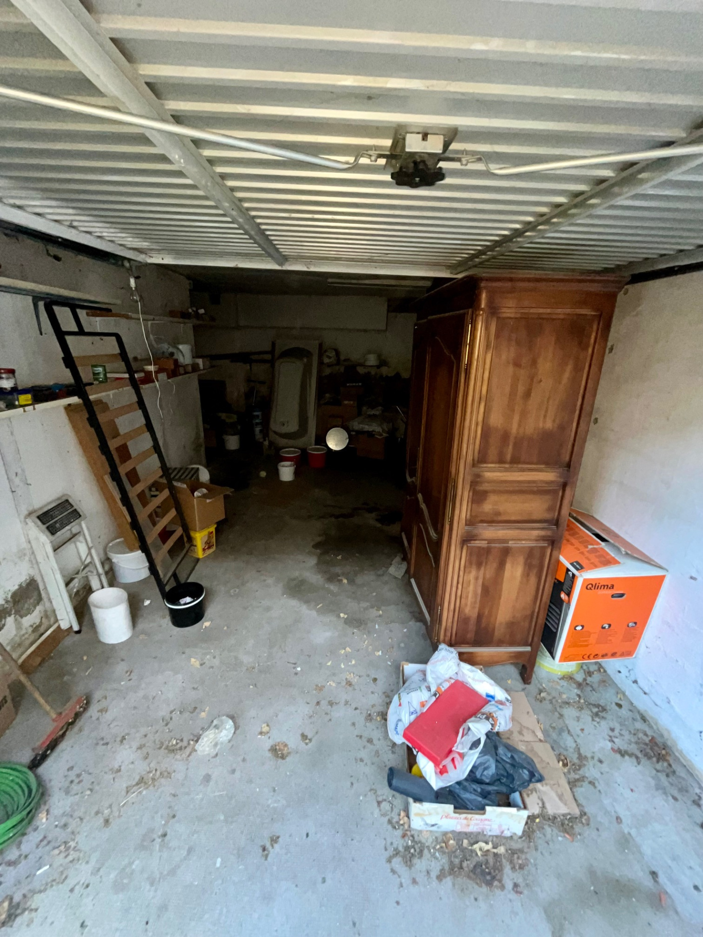 Grand garage fermé en rez-de-chaussée de 30m2 avec emplacement véhicule et espaces de rangements.